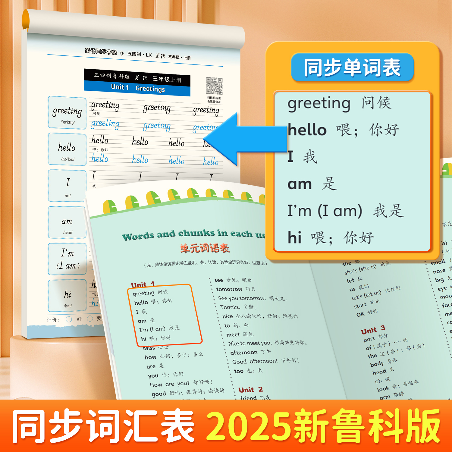 2025新课标山东五四学制鲁科版 英语词汇短语同步单词练习国标体三四五年级上册下册英文临摹一课一练暑假课堂作业预习知识练字帖本