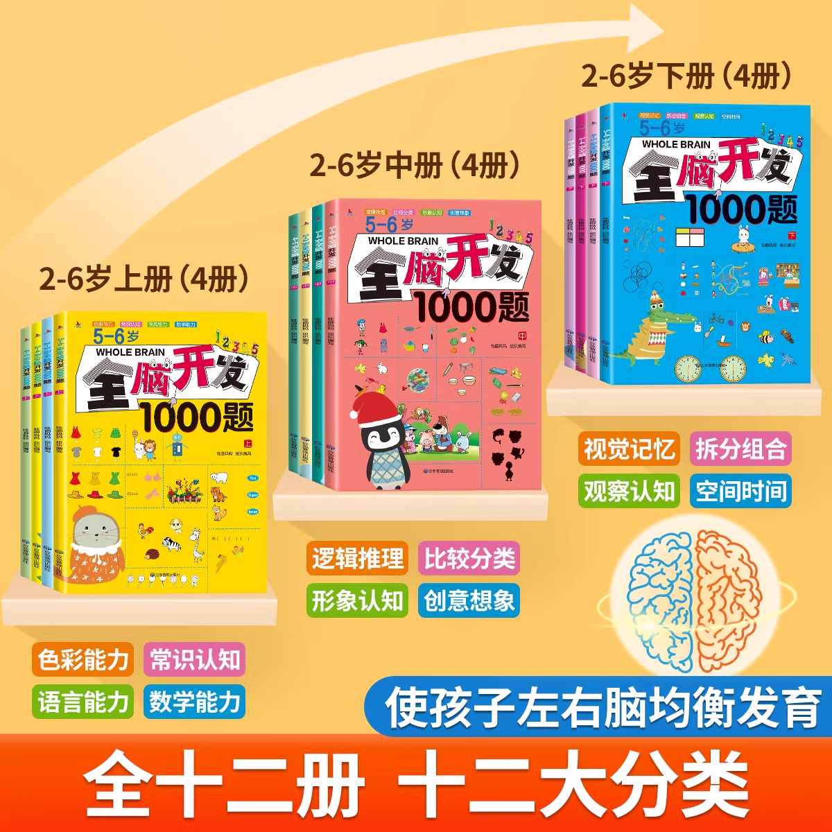 全脑开发思维训练700题1000题2到3到4周岁5 书幼儿园宝宝启蒙早教书 6岁幼儿思维逻辑训练书儿童益智书籍左右脑智力开发大脑思维