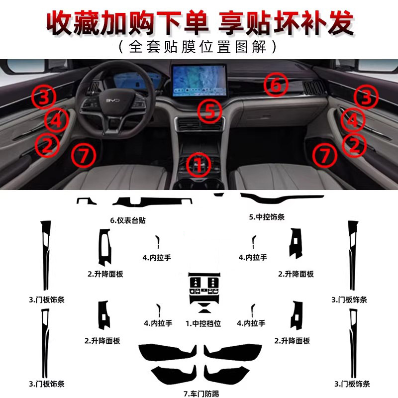 碳纤膜专用25款 中控贴膜宋plus内饰保护膜 比亚迪宋plusdmi冠军版