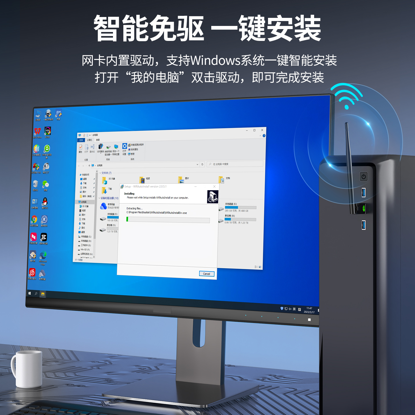 usb无线网卡台式 机wifi6接收发射器笔记本电脑主机无限上网卡连接热点外置网络外接千兆5G双频信号免驱动