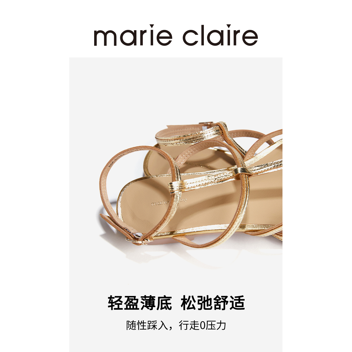 松弛舒适marieclaire女鞋 MC女鞋 锈铜金金属牛皮方头细带罗马凉鞋