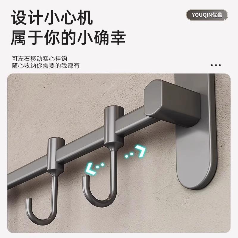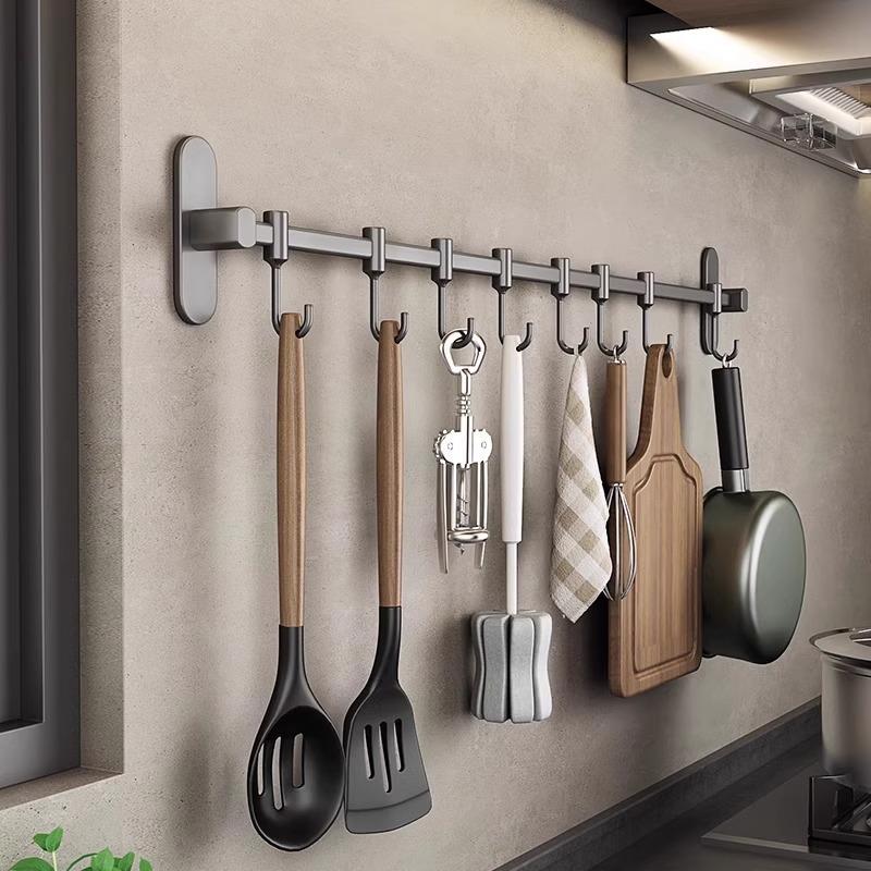 厨房挂钩免打孔挂杆厨房置物架锅铲勺子挂架不锈钢排钩壁挂式 收纳
