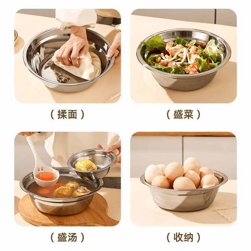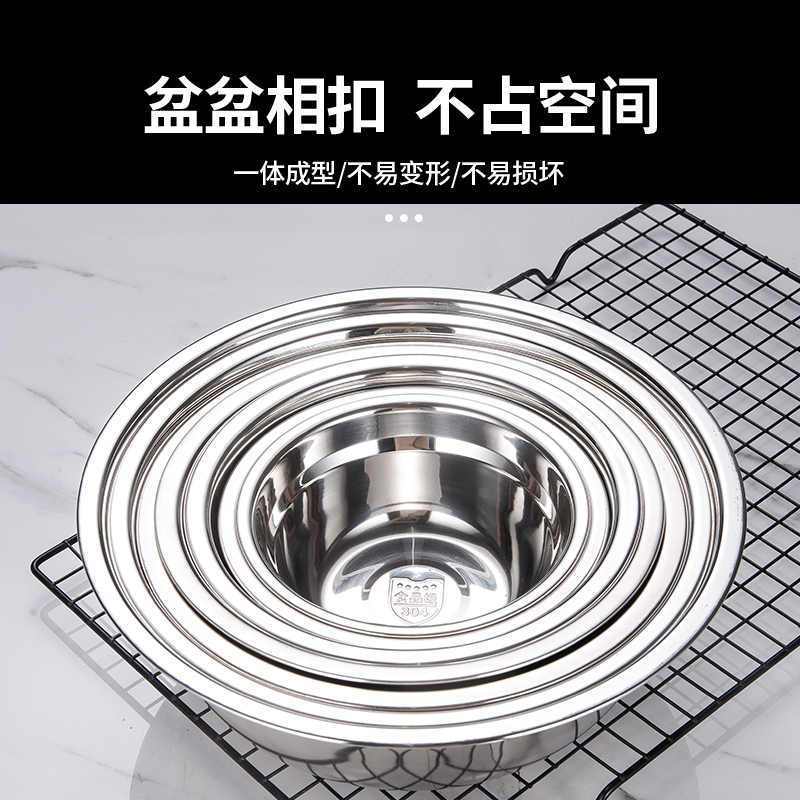 特厚304不锈钢盆食品级家用打蛋和面盆厨房烘焙洗菜盆汤盆铁盆子