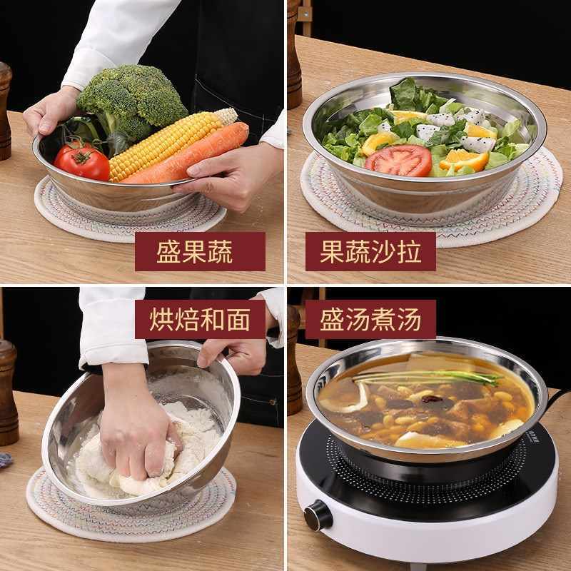 特厚不锈钢沙拉盆抗菌级洗菜和面家用厨房打蛋凉拌料理盆直边盆碗
