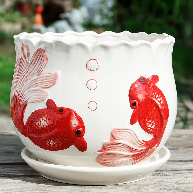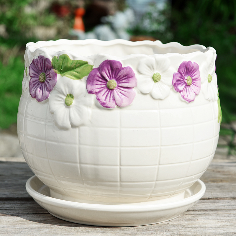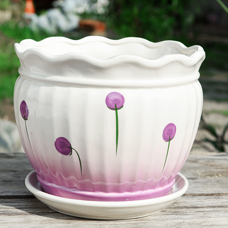 花盆陶瓷带托盘大号特大号特价 清仓创意透气绿萝多肉绿植花盆批发