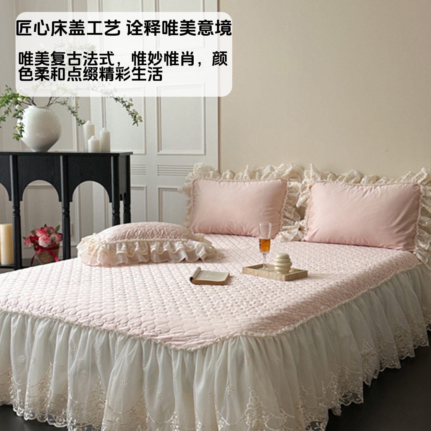 法式 少女心床盖长绒棉四件套公主风床裙纯棉床品蕾丝花边全棉被套