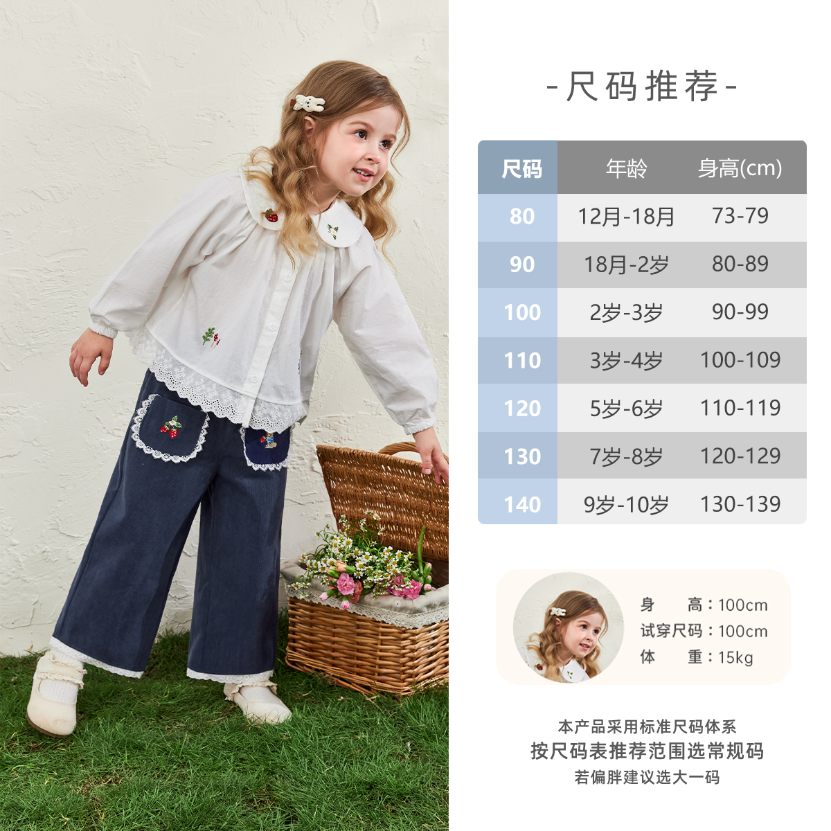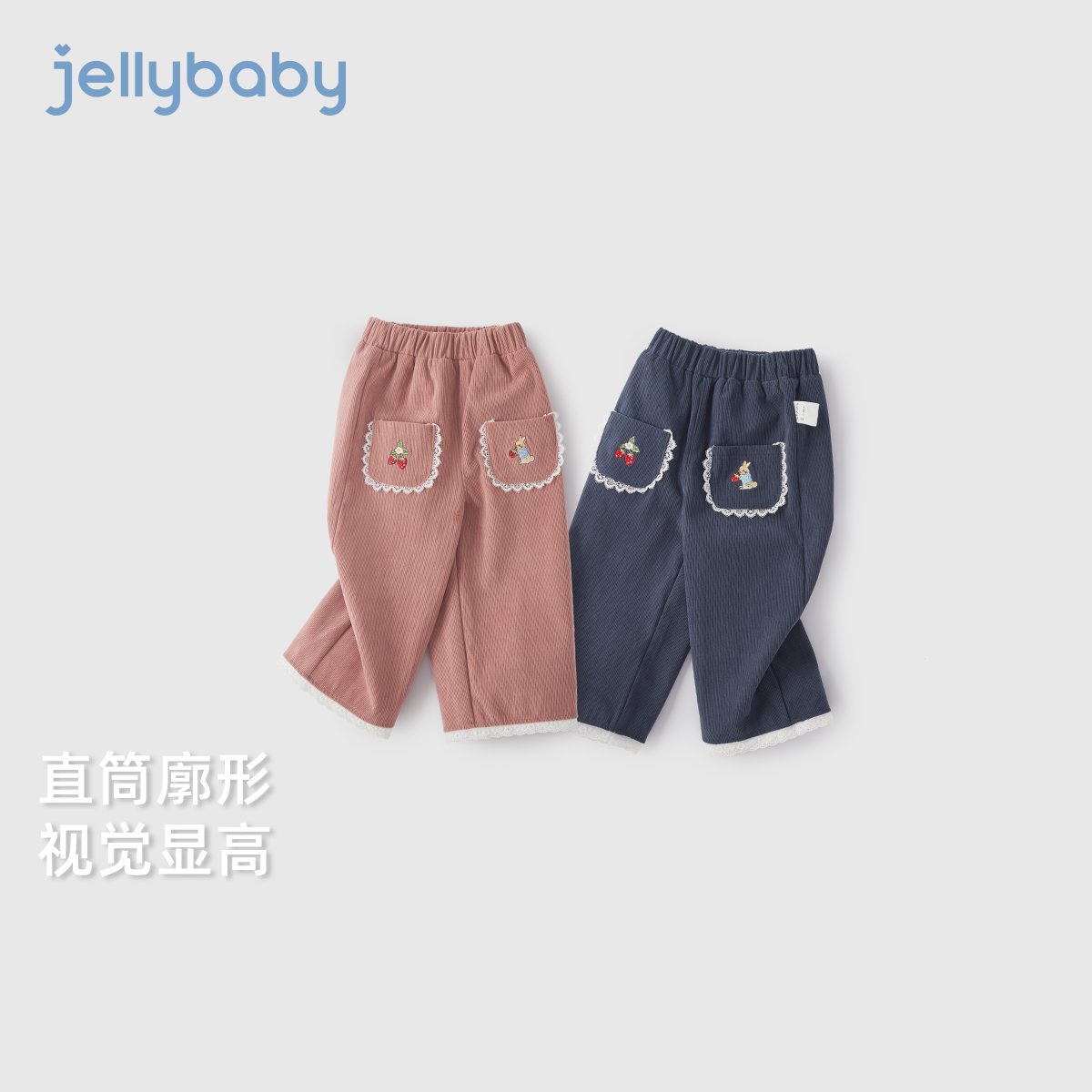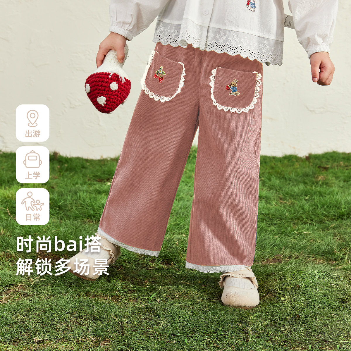 儿童法式 花边长裤 裤 7A抗菌 子 宝宝秋季 女童休闲裤 秋装 小童直筒裤