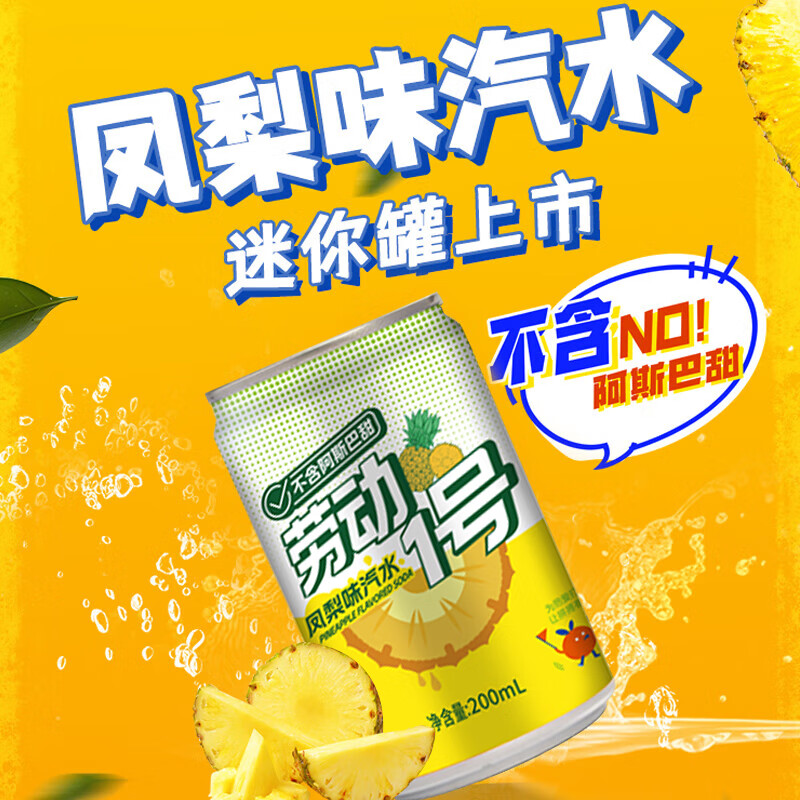 碳酸饮料 24瓶罐装 北冰洋劳动1号迷你凤梨 橙味果味果汁汽水200ml