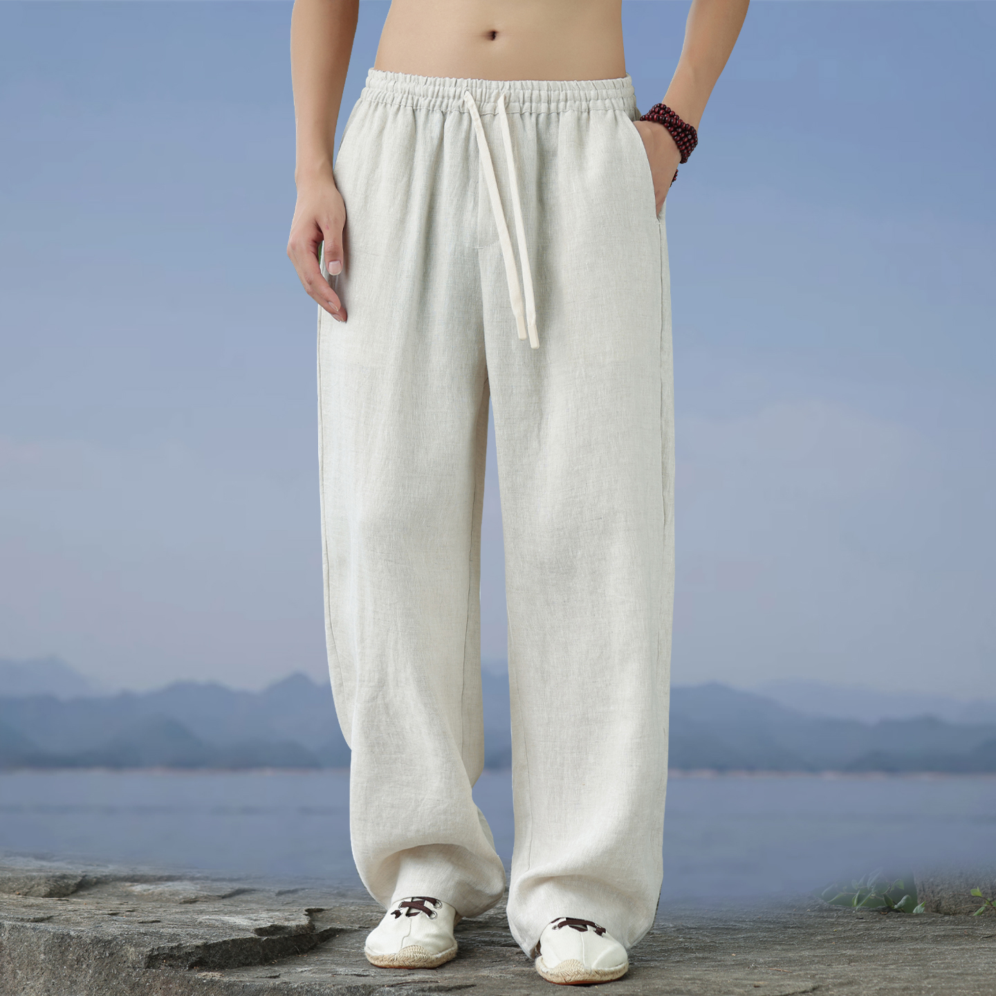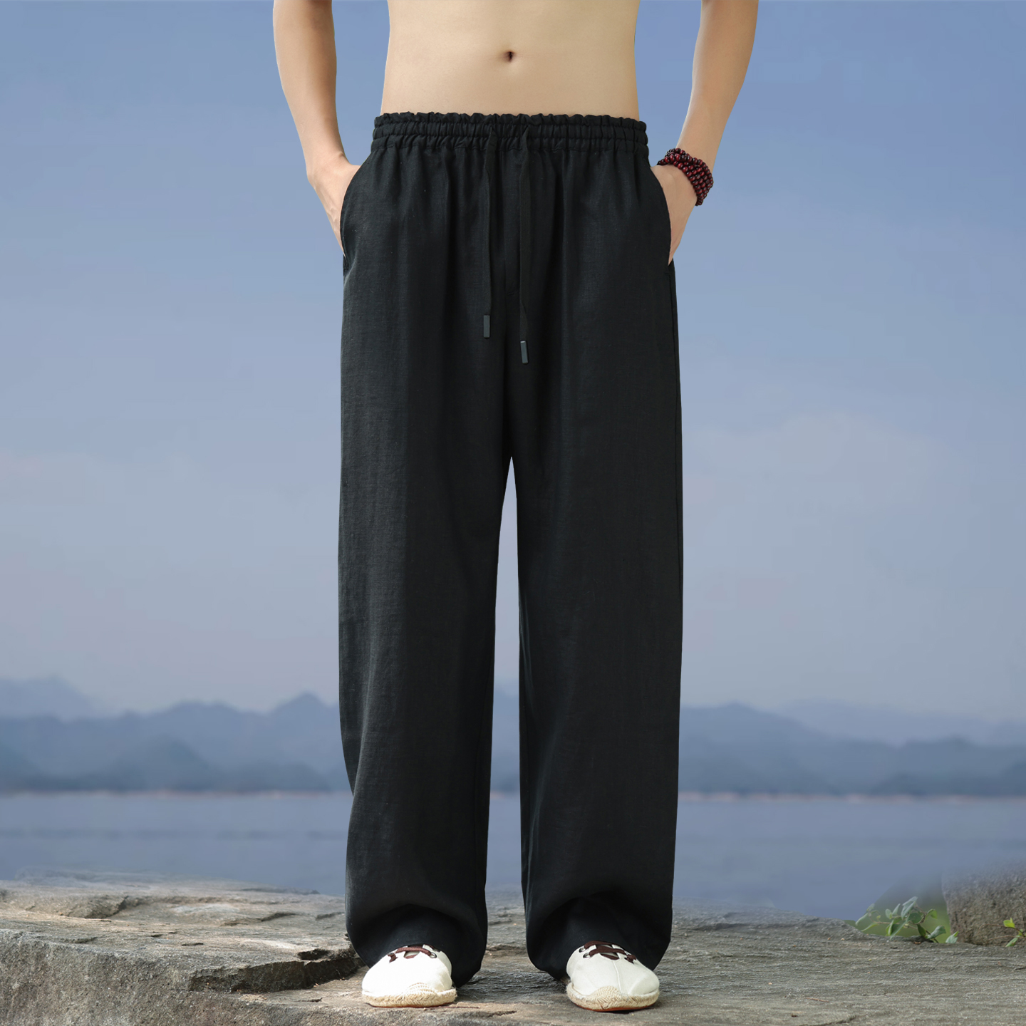 系带松紧宽松百搭休闲裤 鸭鸭羊毛蚕丝保暖卫裤 男士 新款 2025秋季