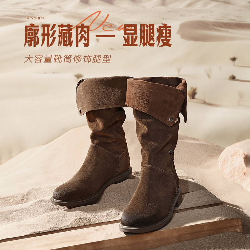 吴千语同款 百丽女靴荒野来信西部牛仔靴加绒堆堆长筒靴3QFC3DG5