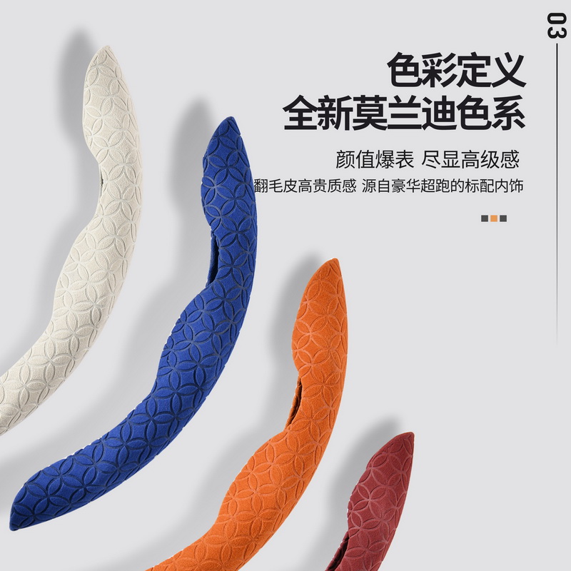 2025年新款 翻毛皮纳帕皮汽车方向盘套 铜钱纹卡式
