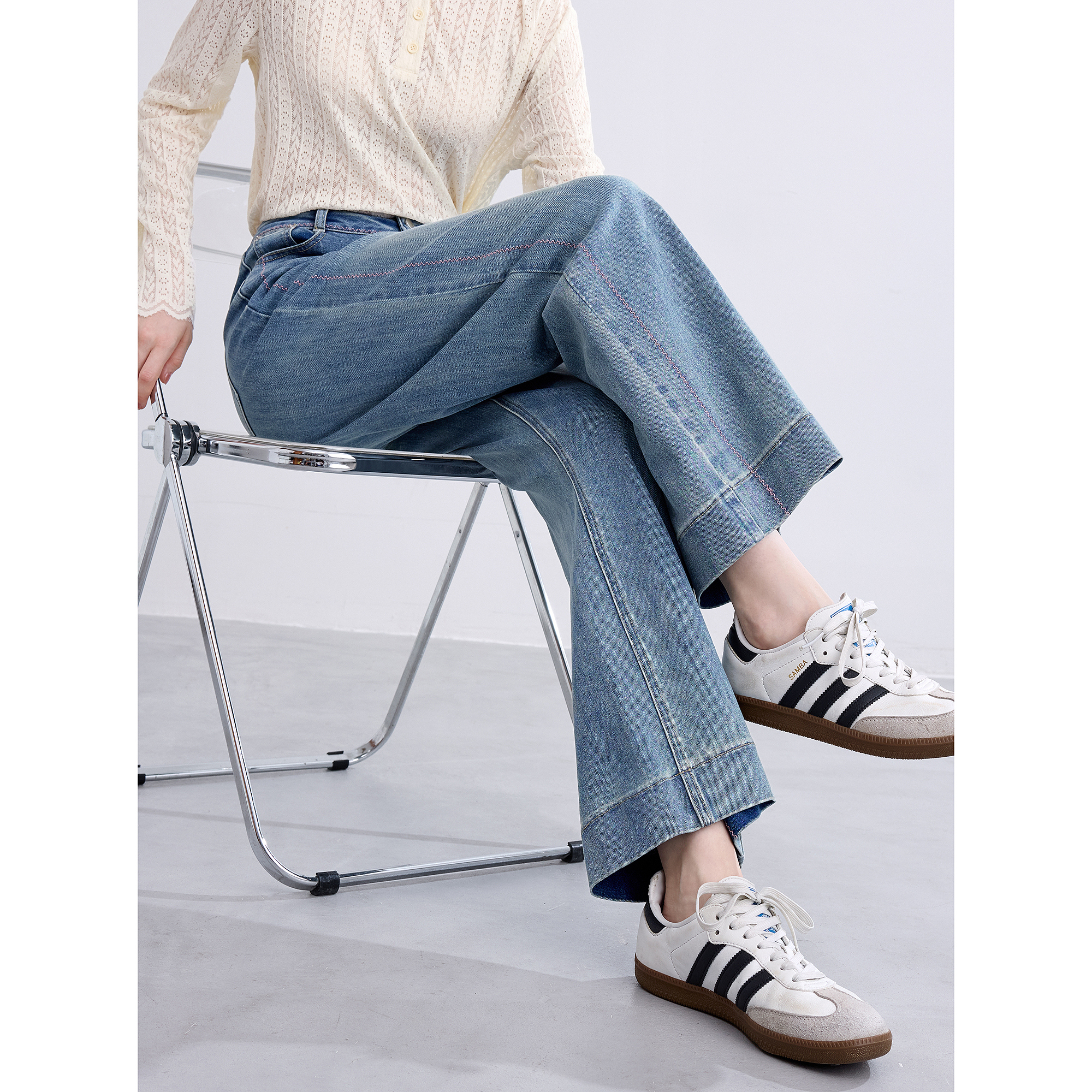高腰阔腿裤 betu百图原色水洗磨白牛仔裤 新款 2025年秋季 女九分裤