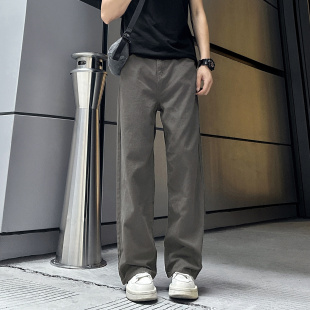 男潮流百搭宽松直筒阔腿裤 极简咖色牛仔裤 新款 QUALCOMM2025秋季