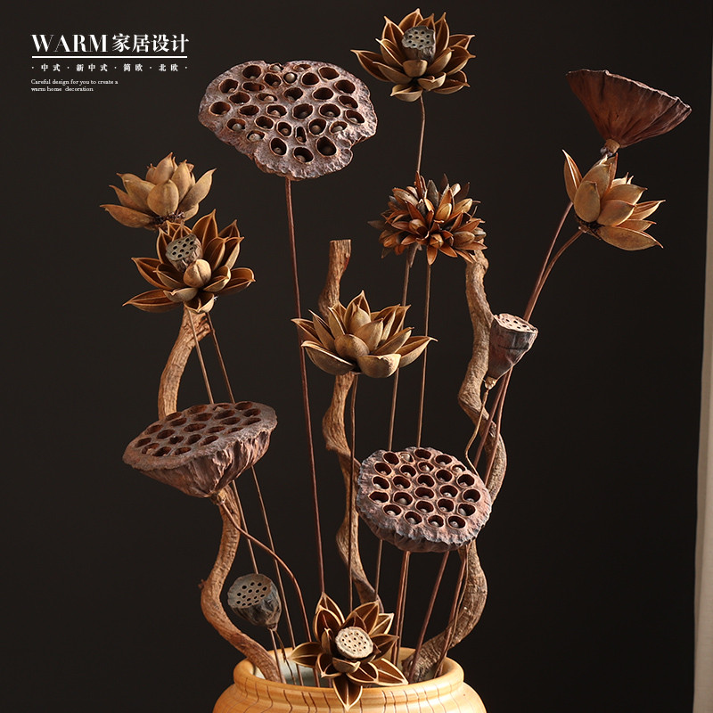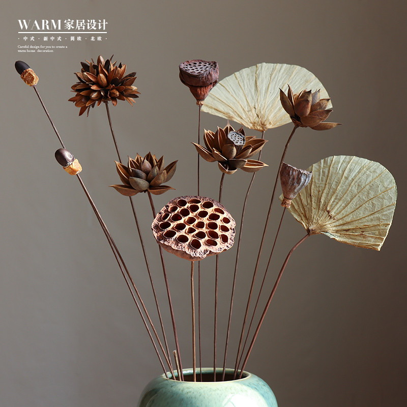 荷花莲蓬云南干花真花花束风干混搭松果文艺装 饰摆件客厅禅意干花