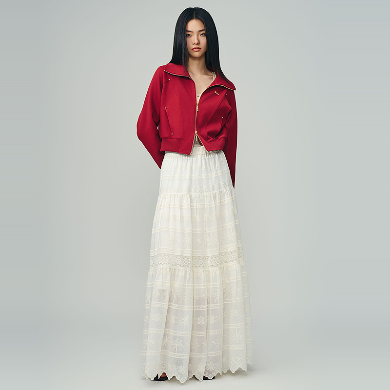 烫金网纱半身裙女秋冬开叉长裙HS0028 新中式 COCOBELLA 浮金碎影