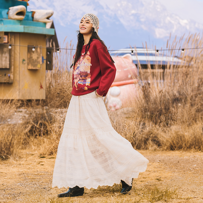 新款 Navigare小帆船高腰显瘦半身裙女25秋季 a字长裙 王诗晴同款
