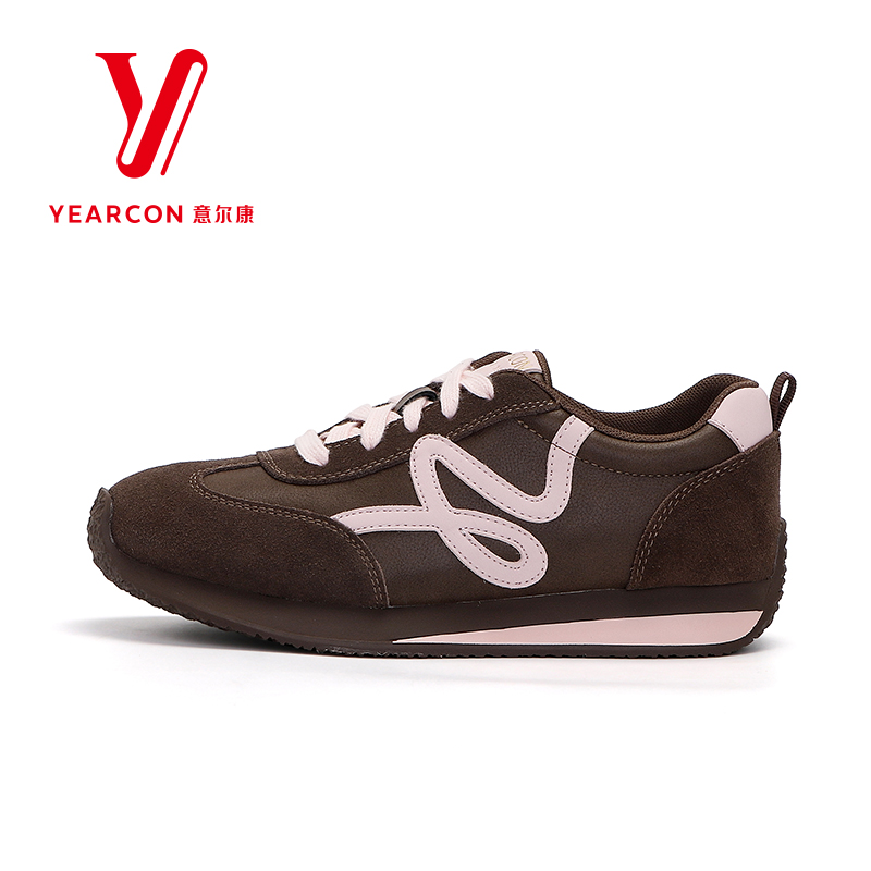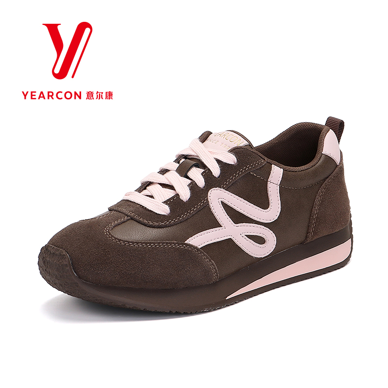 女款 休闲运动鞋 2025秋季 棕色内增高设计感小众时尚 新款 人本德训鞋