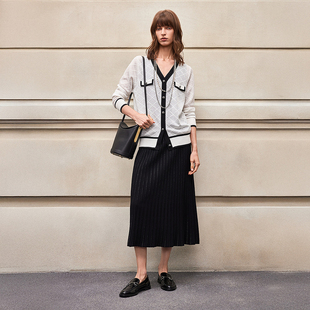 RUISHI芮时 可机洗60支羊毛知识分子风A字遮肉显瘦百褶半身裙女冬