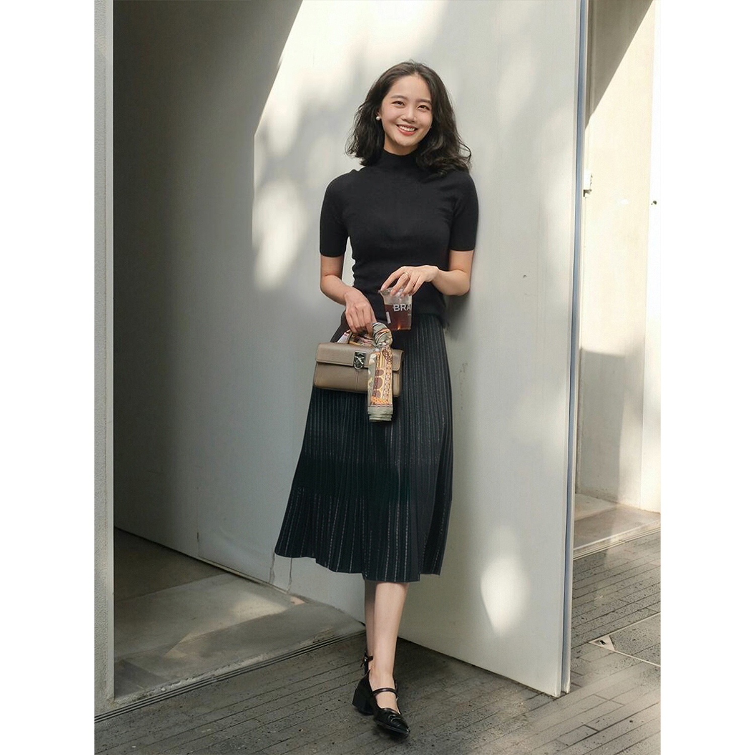 a字裙气质黑色半身裙百搭秋新款 复古法式 裙子 朗姿Basic衣橱
