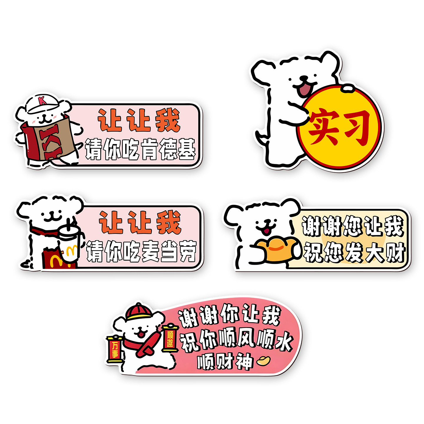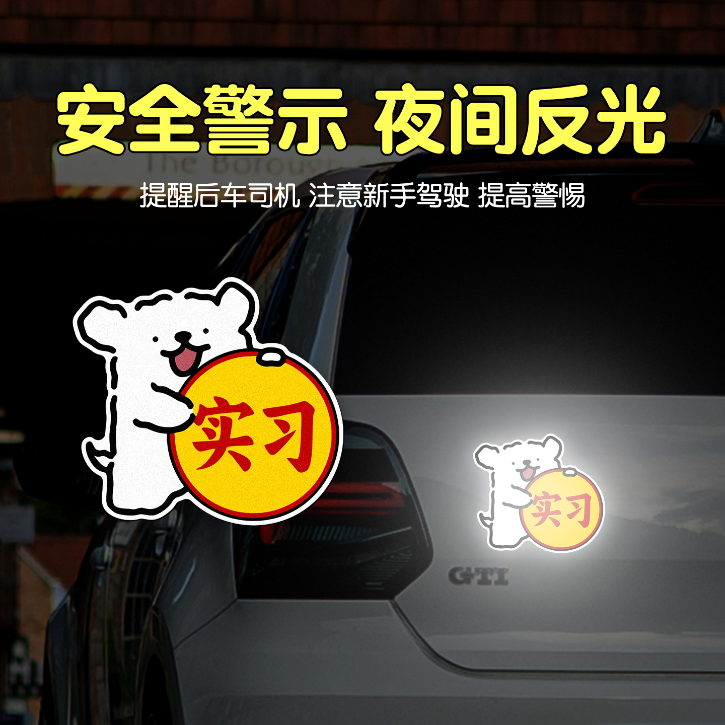新款 创意文字反光防水贴纸磁贴车用可爱 线条狗车贴实习贴卡通个性