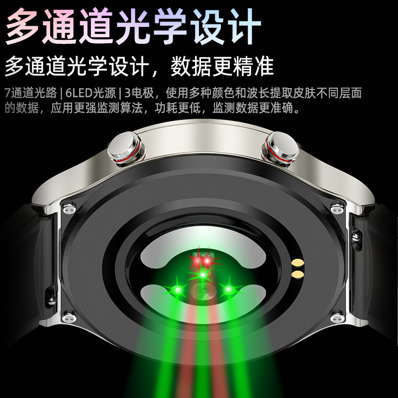 VISIKE高精度无创测血糖血压尿酸血脂智能手表老人心率血氧心电图24小时动态监测量仪通话运动健康手环