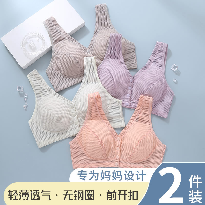 女士聚拢文胸纯棉无钢圈薄 中老年前扣式 妈妈美背内衣2025新款 爆款