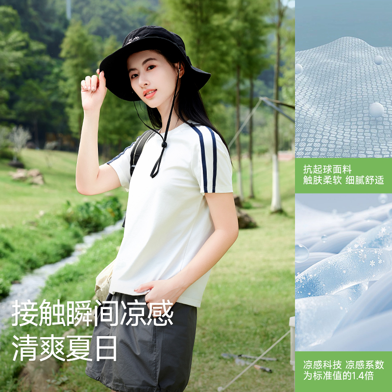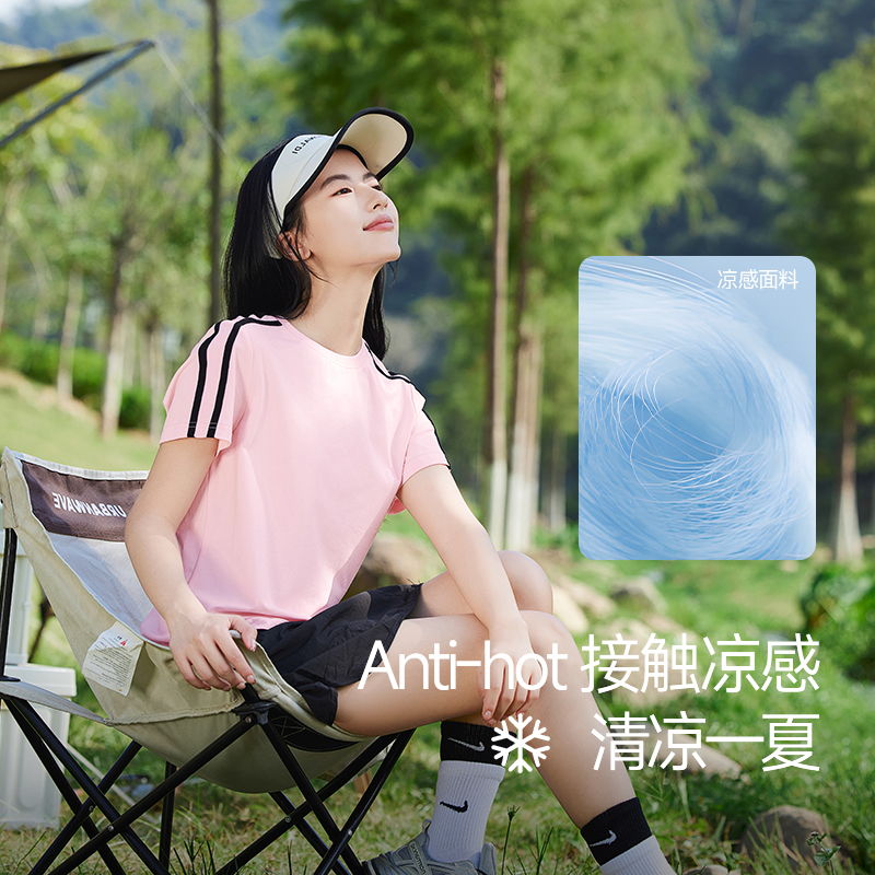 撞色正肩体恤凉感运动上衣 2025新款 NOB真维斯冰丝短袖 t恤女春夏季