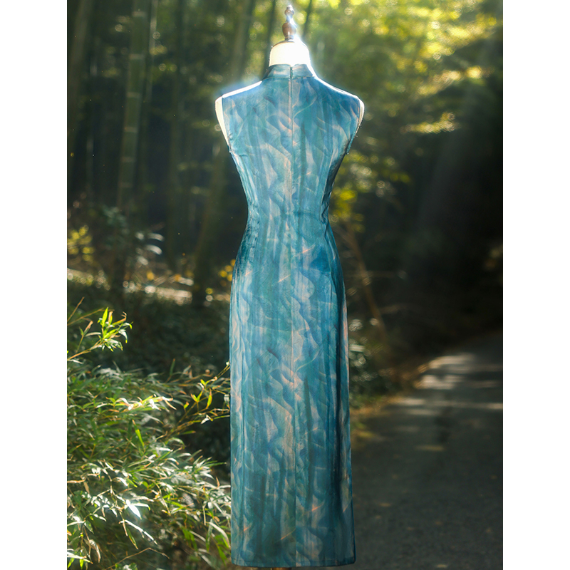 连衣裙女夏高级感开叉长裙旗袍 人丝肌理提花新中式 JKJS 幽兰影