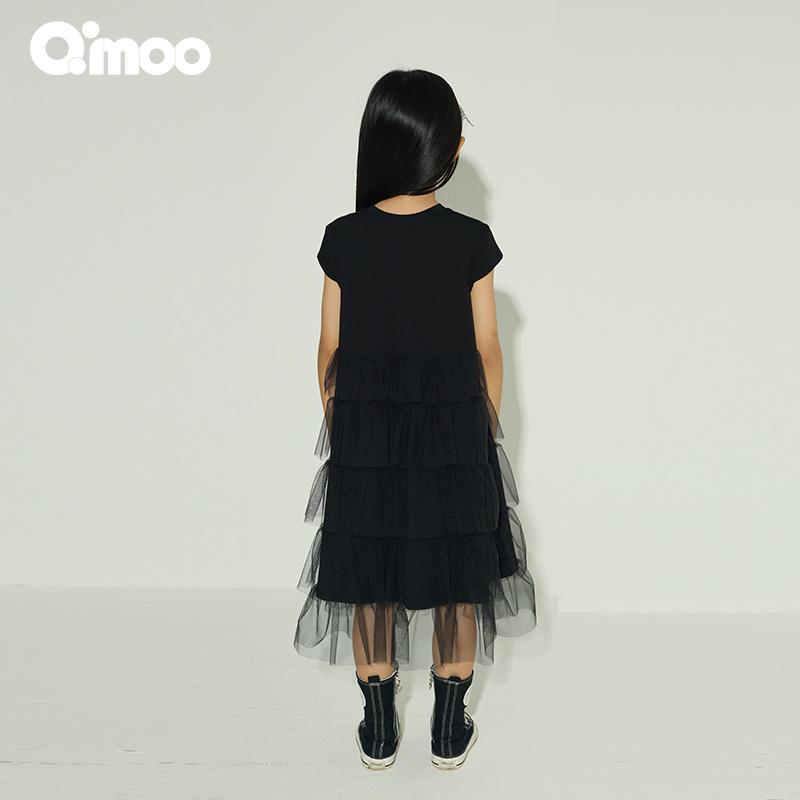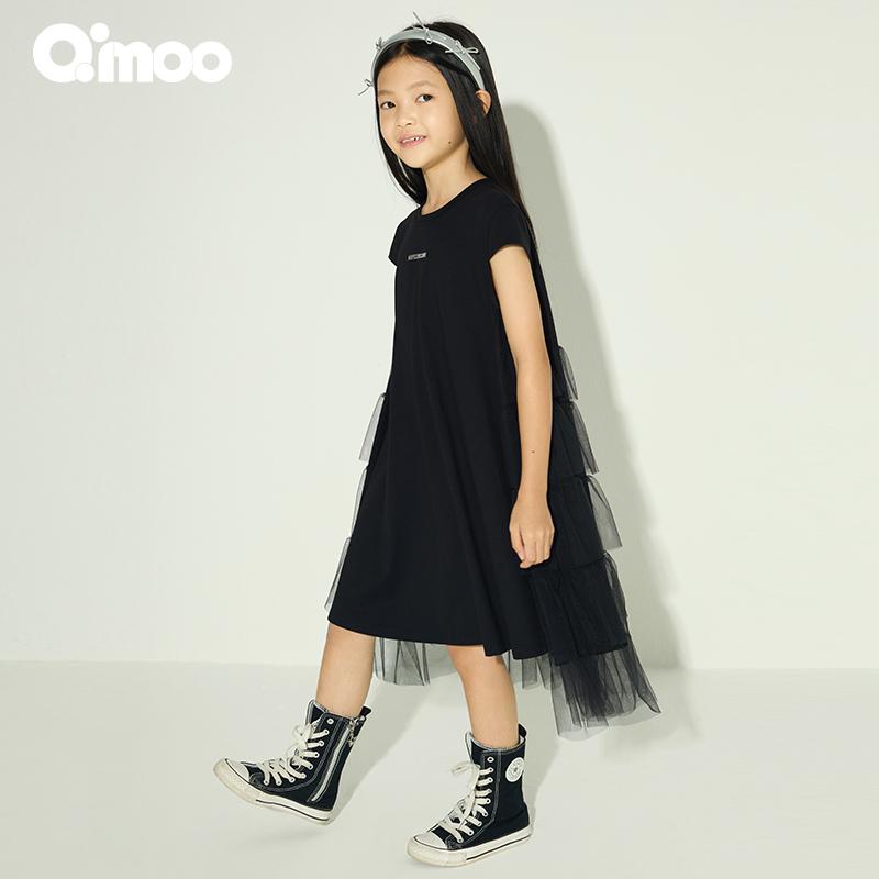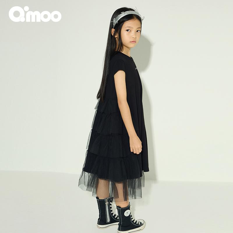 女童网纱气质拼接烫银连衣裙QSS2LC136A 童装 Qimoo淇木25夏季 新款