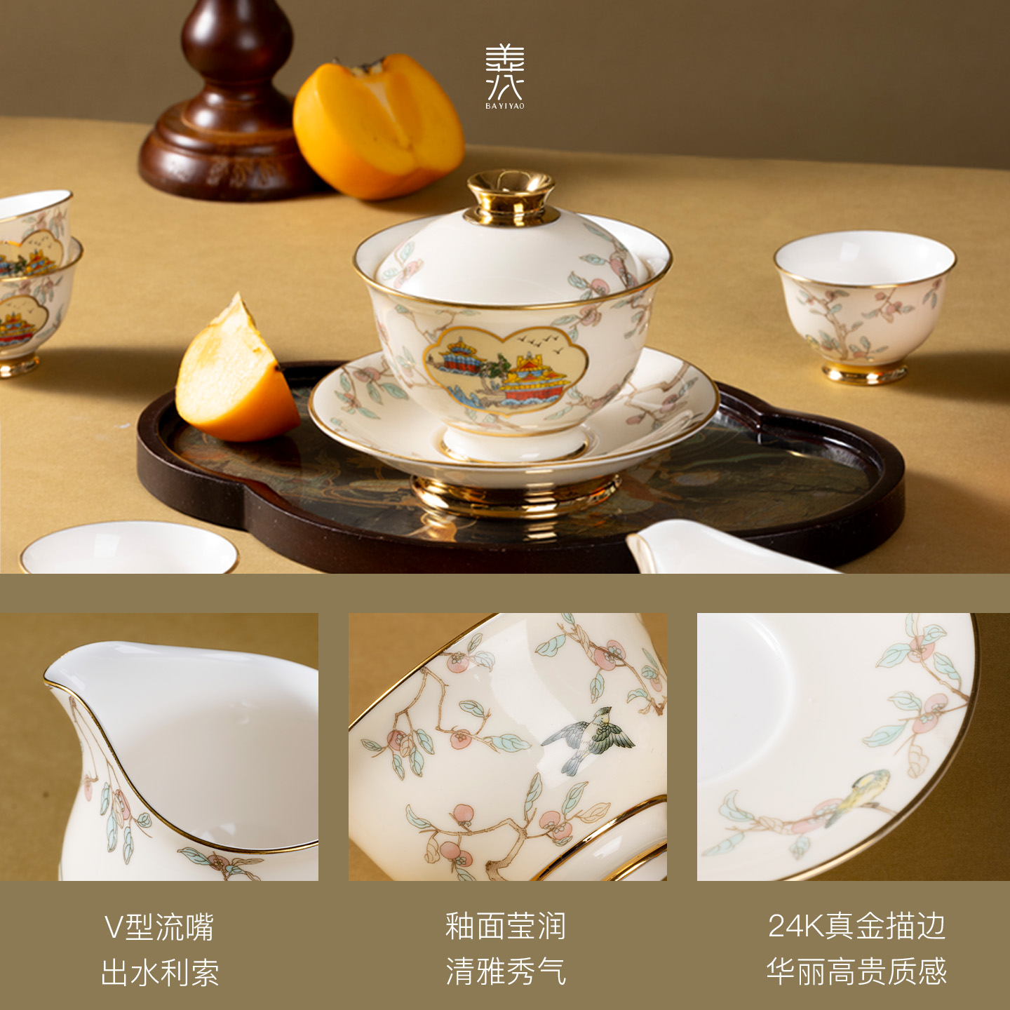 高档轻奢 家用茶具套装 八义陶瓷柿柿如意茶具套装 功夫茶具新中式