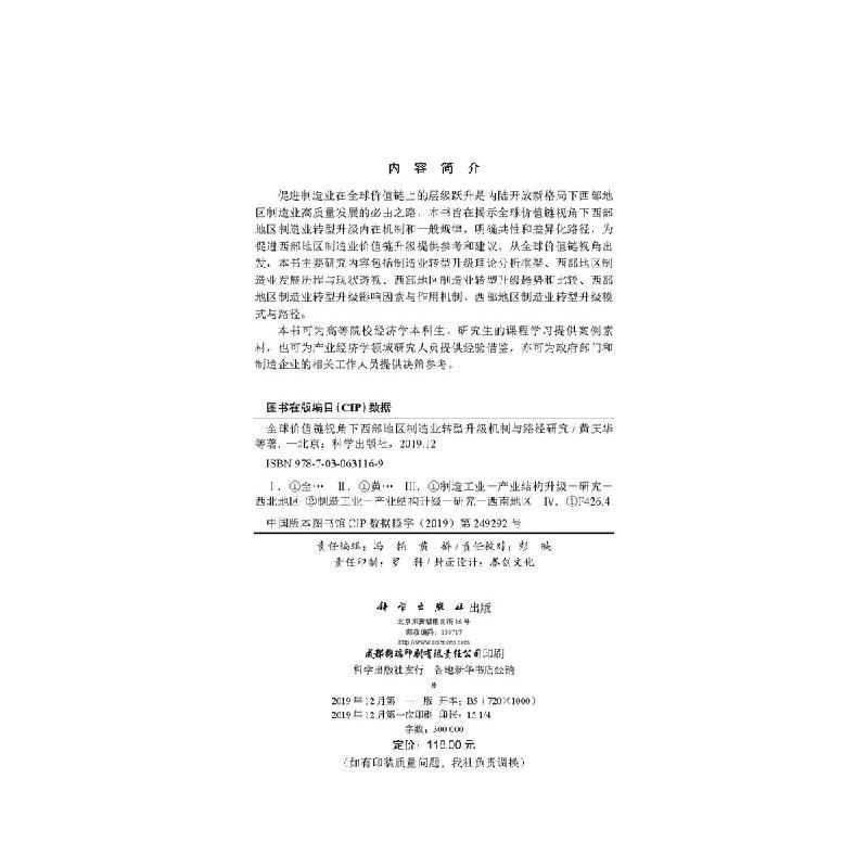 科学出版 全新正版 等 黄庆华 社 全球价值链视角下西部地区制造业转型升级机制与路径研究