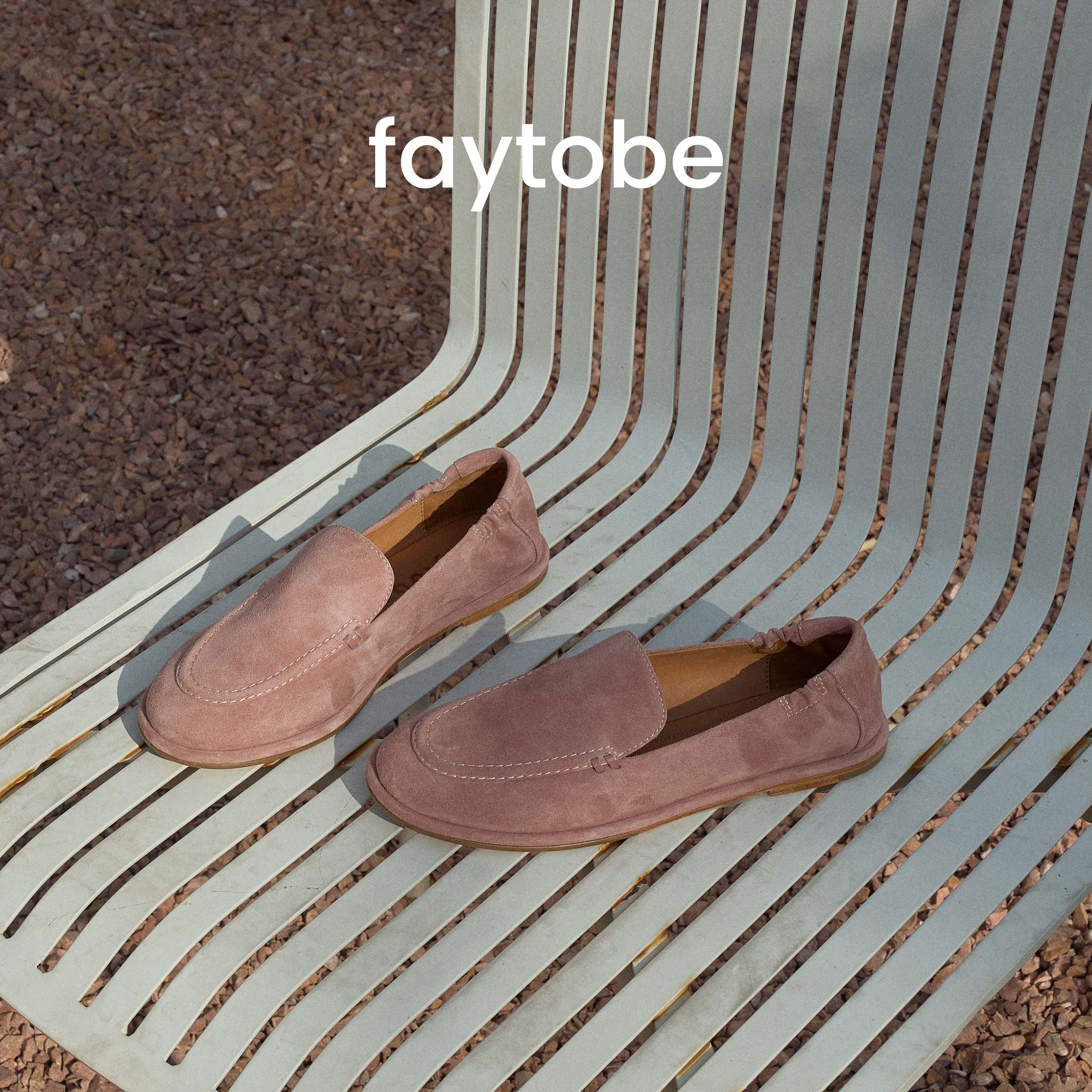 平底一脚蹬英伦舒适超软底单鞋 新款 女牛皮 绒面乐福鞋 faytobe经典