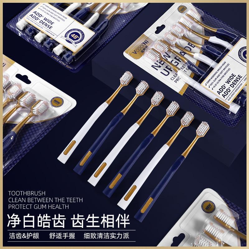 轻奢宽头中毛牙刷高效清洁情侣成防滑便携手柄人家庭装 6支装