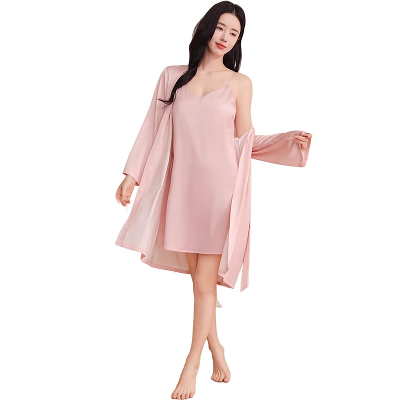 春秋吊带睡裙性感睡衣高级感套装 猫人冰丝女款 V领轻奢睡袍法式