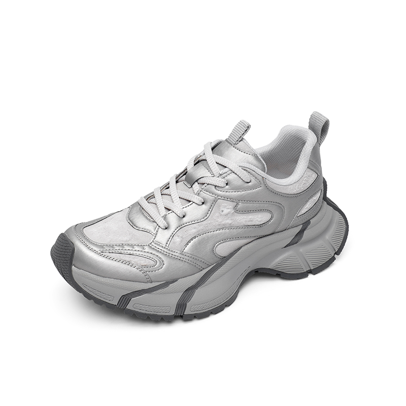 厚底增高休闲鞋 秋女鞋 银色老爹鞋 时尚 斯凯奇熊猫鞋 运动鞋 2025新款