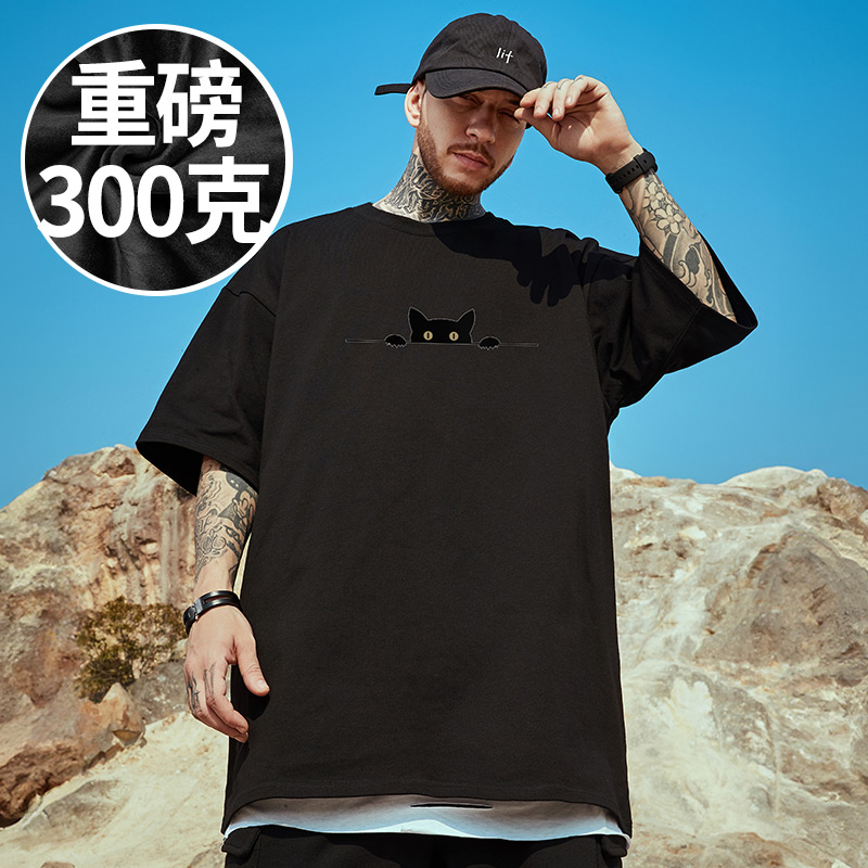男装 款 情侣短袖 夏季 t恤纯棉胖子宽松半袖 300g重磅港风加肥加大码
