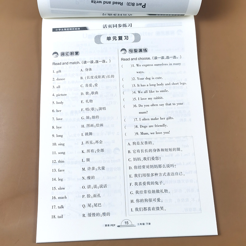 人教版 pep 课堂作业本 活页 笔记阅读理解 单词默写本短语句子 上册 每日一练 三年级下册英语同步练习 小学生3年级课本配套练习题