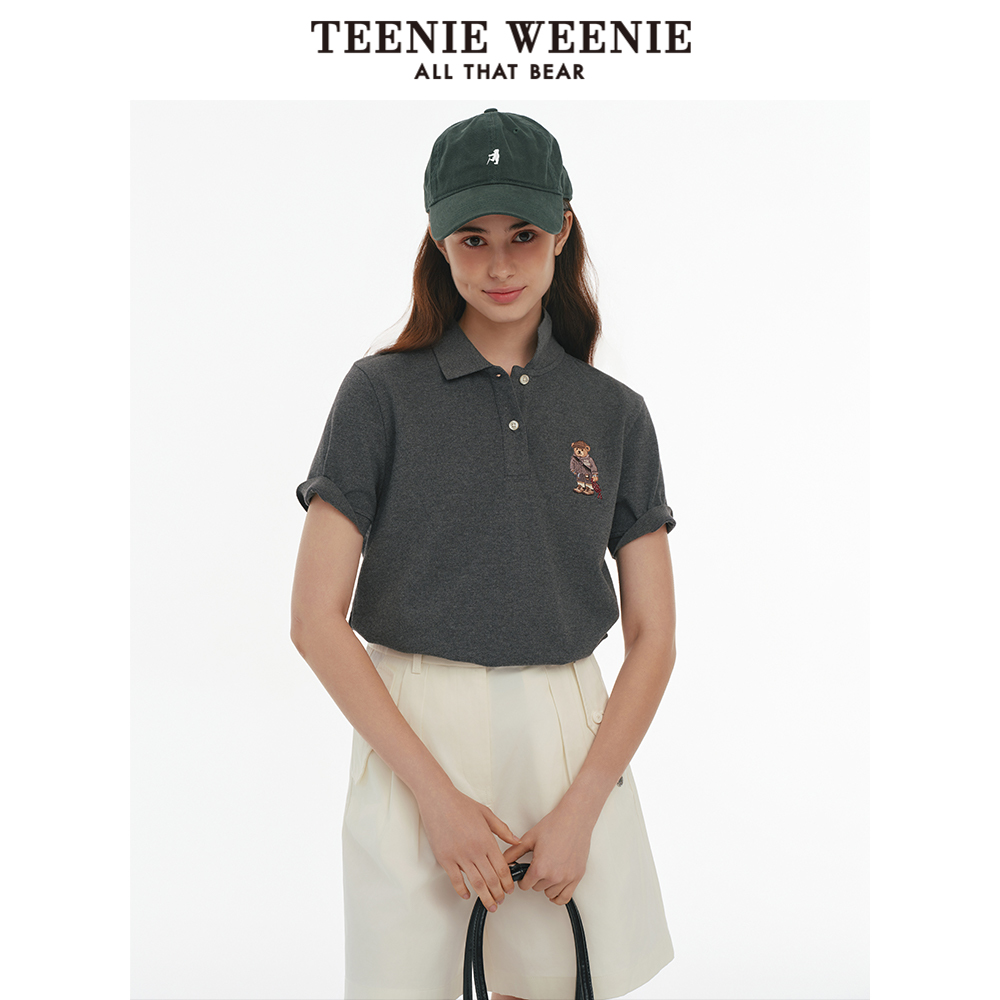 简约休闲T恤女 Polo衫 ics iconslab撞色刺绣条纹织带运动翻领短袖