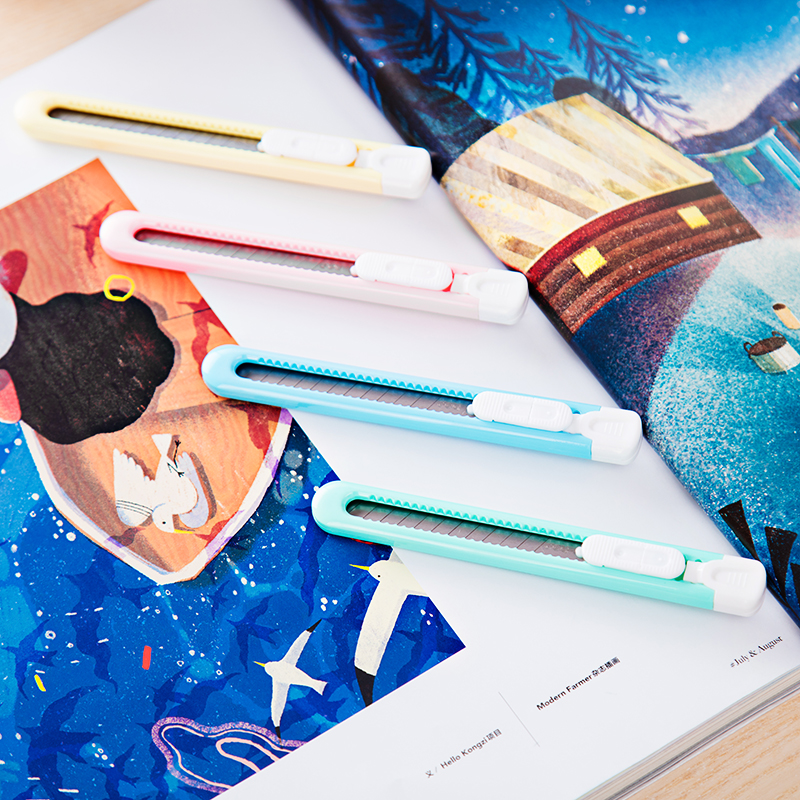 削笔拆快递拆箱刀 壁纸刀办公用品开箱刀10把装 得力美工刀 手工裁纸刀清新彩色小型小号迷你可爱便携式