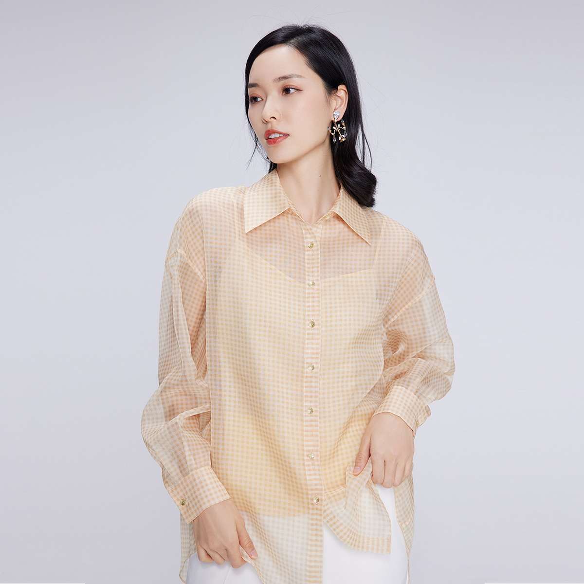 TeenieWeenie小熊女学院风复古格纹棉衬衫 格子上衣 2025年秋新款
