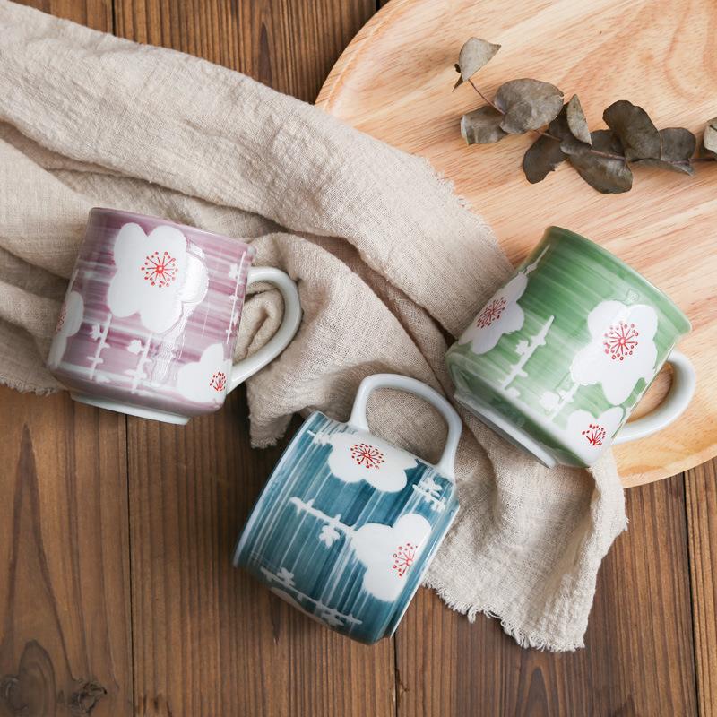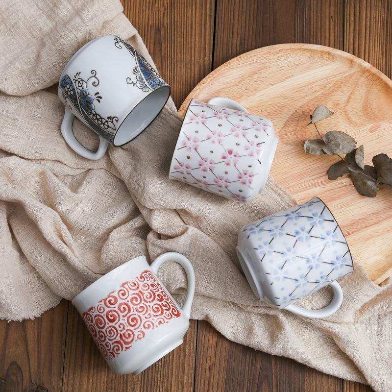 日式 仿古陶瓷杯高温釉下手绘宽口杯伴手礼陶瓷喝水杯情侣杯
