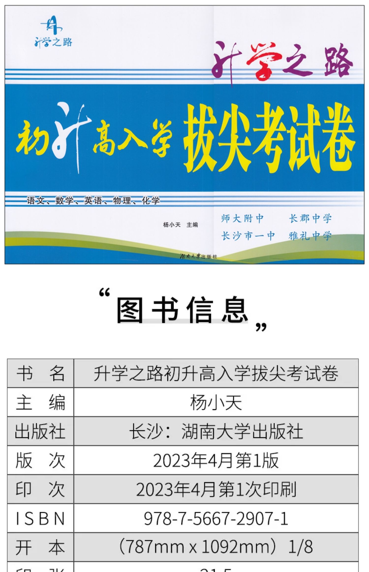 高新入学测试真题集 初升高入学拔尖考试卷语文数学英语物理化学试卷 湖南四大名校师大附中长郡雅礼中学长沙市一中真题 速发 正版