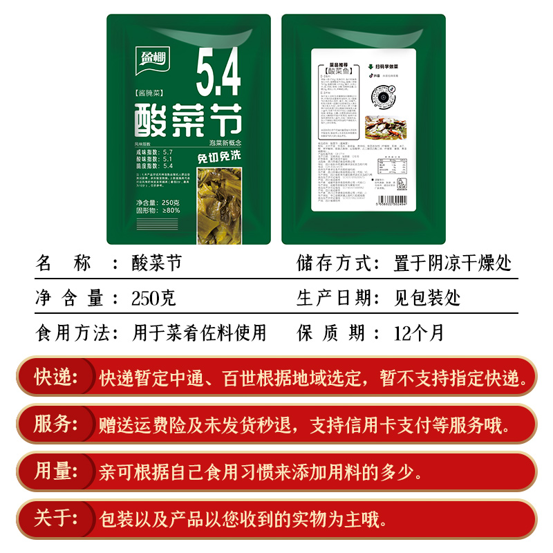 盈棚酸菜节250g 4四川泡菜特产家用商用免切免洗老坛特产酸菜鱼
