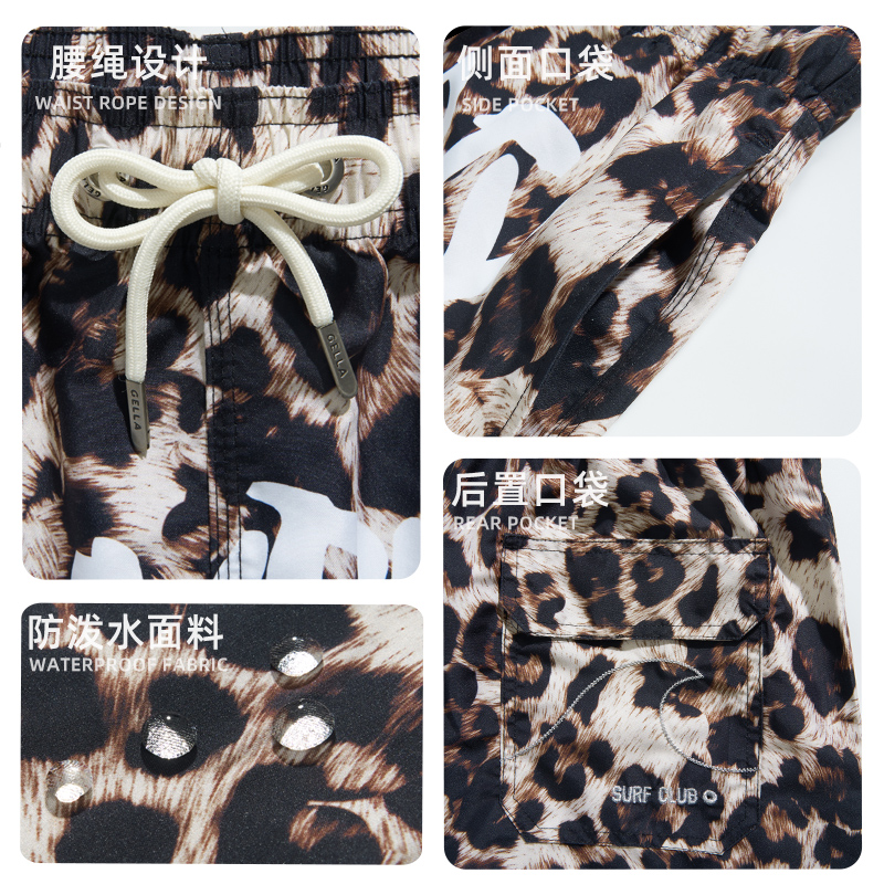 水上乐园游泳裤 盖浪海边度假沙滩裤 男速干豹纹字母运动健体短裤