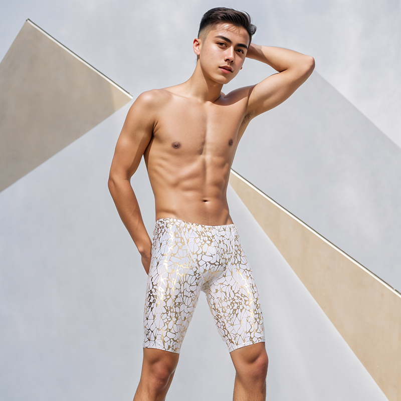 泳裤 温泉游泳裤 防尴尬白色鎏金新款 专业速干大码 时尚 飞鱼未来男士