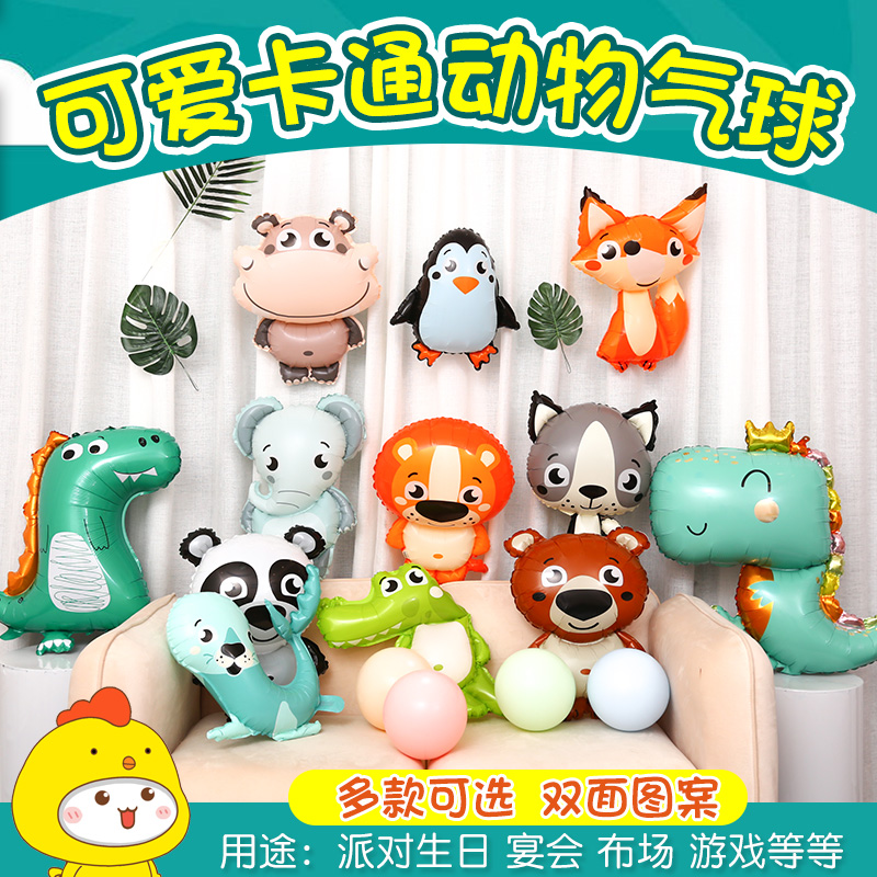 宝宝生日派对装 饰 饰品动物长颈鹿恐龙卡通铝膜气球布置玩具可爱装