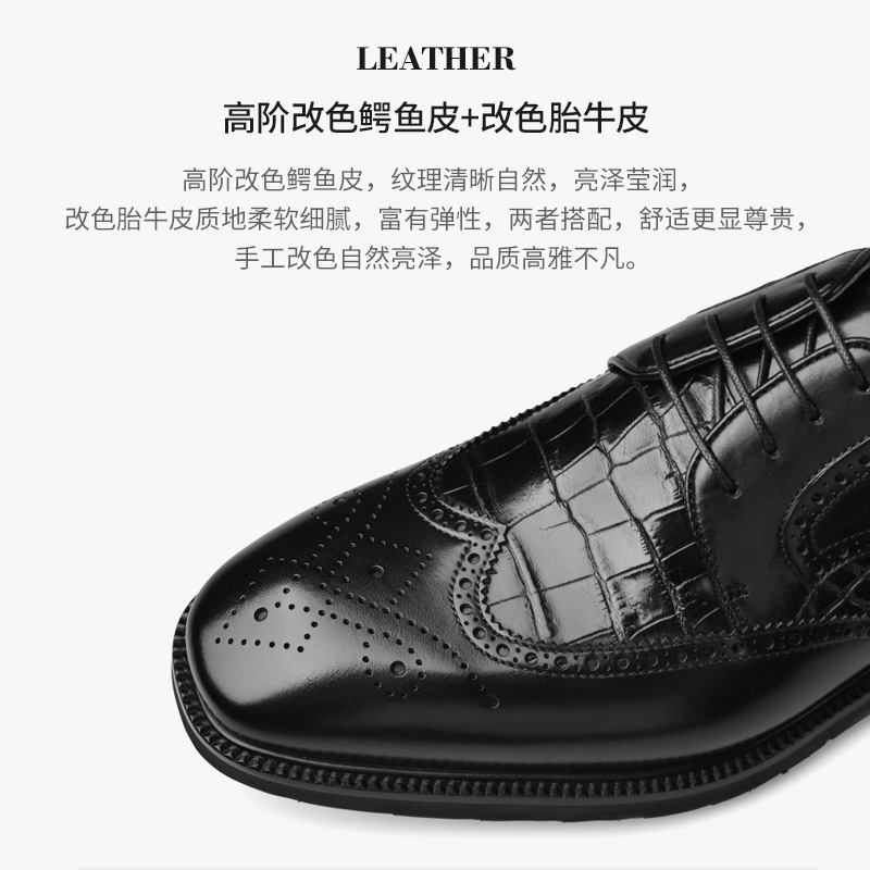 商务正装 男士 皮鞋 男真皮鳄鱼皮新郎婚鞋 宾度男鞋 高端德比鞋 秋冬季