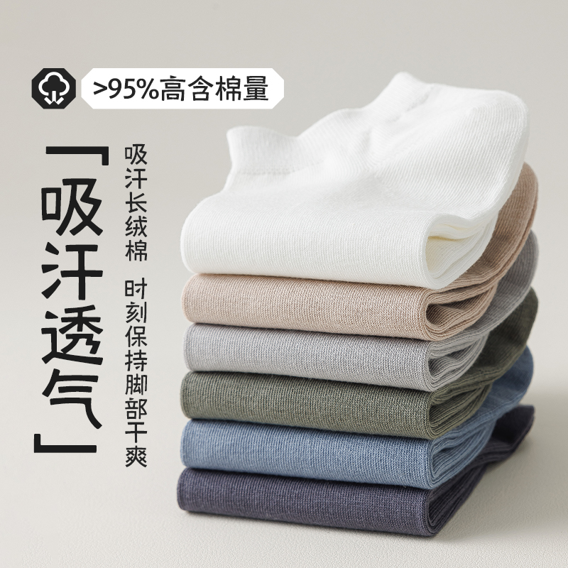 袜子 5双装 春秋款 短袜男 优选好棉 四季