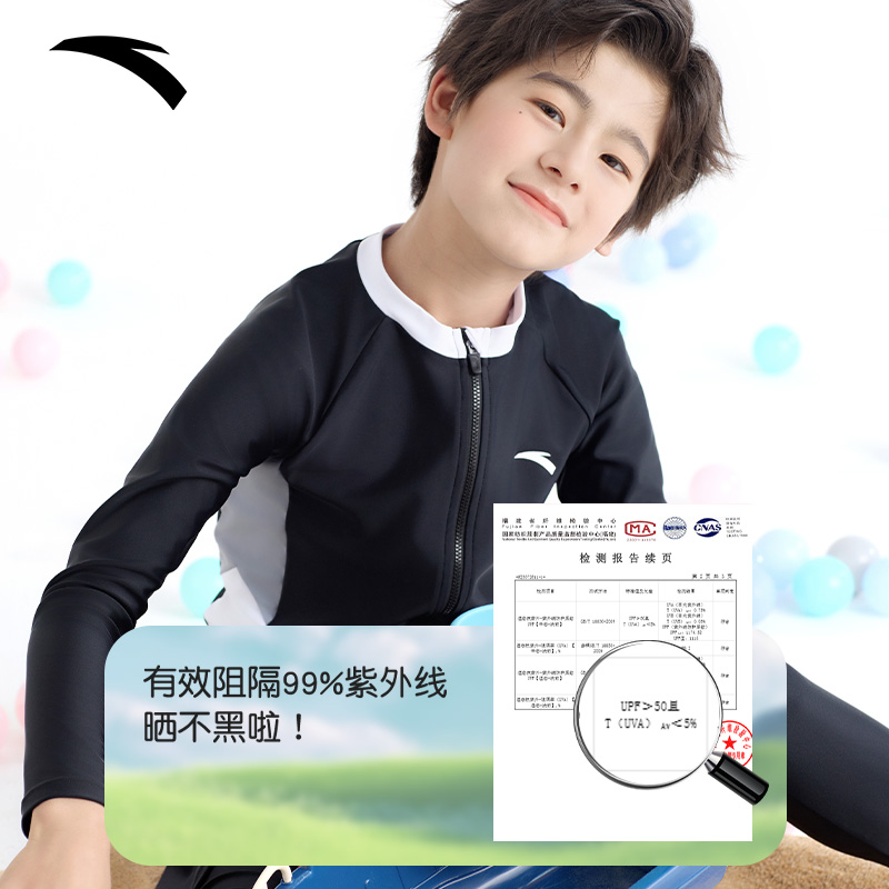 分体男孩 长袖 安踏男童泳衣中大童2025新款 防晒速干三件套儿童长裤