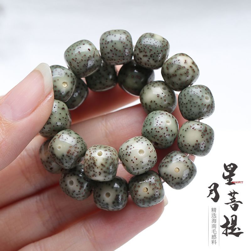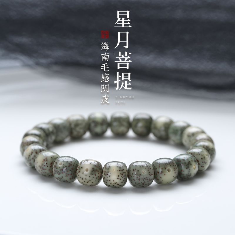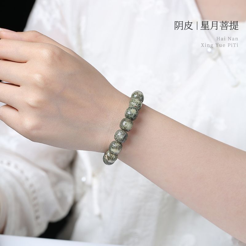 海南阴皮星月菩提子手串绿原生态石玉料单圈手链男女高密文玩佛珠